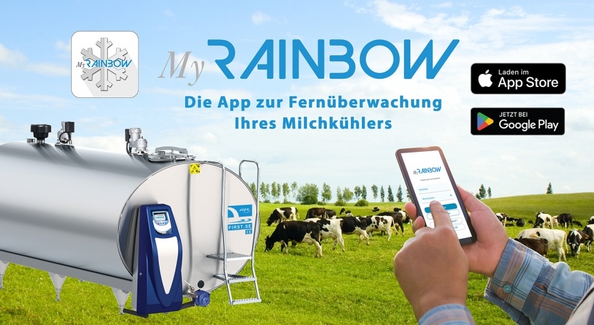 Mit MyRAINBOW behalten Sie Ihren Milchkühler immer im Blick. Passen Sie Ihre Alarme an und erhalten Sie diese per Benachrichtigung, SMS oder E-Mail. MyRAINBOW erstellt Betriebsstatistiken und ermöglicht es Ihnen, den Verlauf der Daten zu speichern.