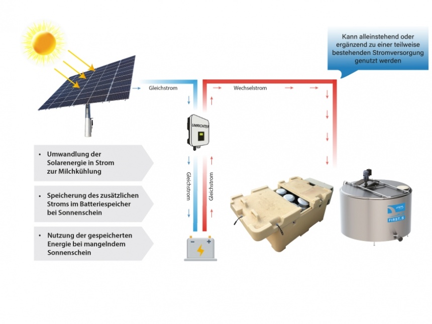 Milch ist ein edles und empfindliches natürliches Nahrungsmittel, das nach dem Melken so schnell wie möglich gekühlt werden muss, um all seine Eigenschaften zu erhalten. Dank der jüngsten technologischen Fortschritte sorgt Solarenergie heute für eine unabhängige Stromversorgung selbst in den entlegensten Regionen der Welt.