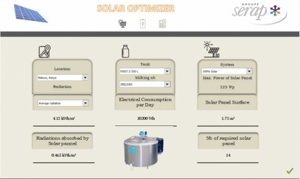 SERAP entwickelte durch den Einsatz von Photovoltaik-Technologie ein komplettes Angebot an Solarlösungen, um die Bedürfnisse für Kühlung und Konservierung von Milch in Regionen mit ungenügender Stromversorgung zu erfüllen. Die ursprünglichen Eigenschaften der Milch werden direkt an der Quelle, so schnell wie möglich nach dem Melken und vor Ort erhalten.